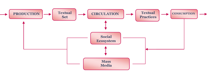 The mass media's speech can no longer be conceived as an isolated message that goes from sender to recipient. In mass communication said speech is characterized by being embedded in a social system made of speeches, a public space in which mass media's speeches circulate, generating complex relations with other speeches.