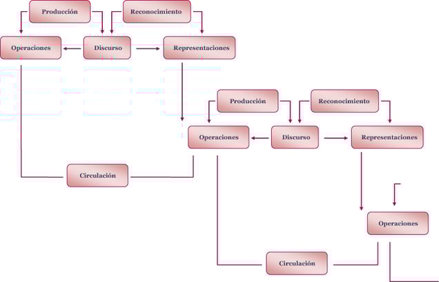 Las relaciones de los discursos con sus condiciones de producción por una parte, y con sus condiciones de reconocimiento por la otra, deben poder representarse en forma sistemática; debemos tener en cuenta reglas de generación (gramáticas de producción) y reglas de lectura (gramáticas de lectura). Estas reglas describen operaciones de asignación de sentido en las materias significantes que se reconstruyen a partir de marcas – o propiedades significantes con una relación no especificada con las condiciones productivas- presentes en la materia significante. Cuando la relación entre una propiedad significante y sus condiciones se establece, estas marcas se convierten en huellas de uno u otro conjunto de condiciones. En este análisis damos cuenta del proceso de circulación de sentido y de la diferencia entre las condiciones de producción y las de reconocimiento.